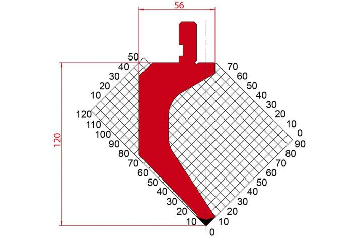Dao chấn 90º 1060. H=120, R=0,8, Max T/m=50